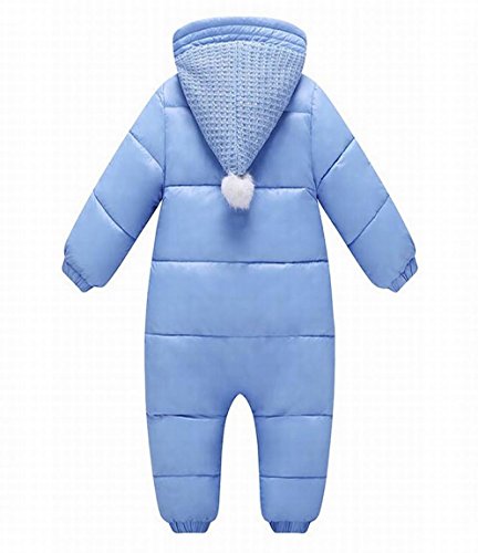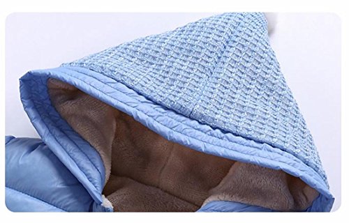 ベビーダウンコート 裏起毛 ファスナー開き フード付き 新生児 ベビーロンパース キッズジャンプスーツ ダウンジャケット 綿つなぎ オーバーオール (ブルー, 90)