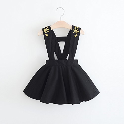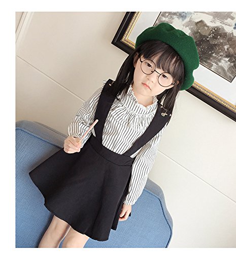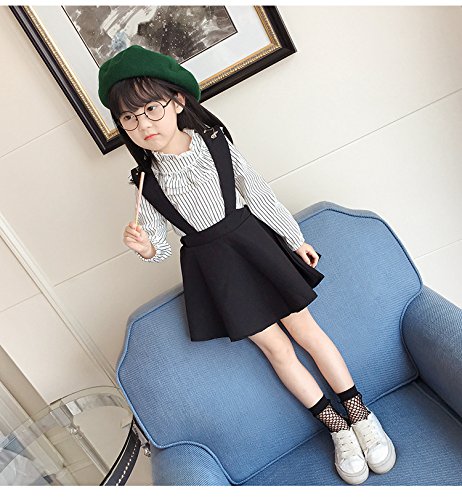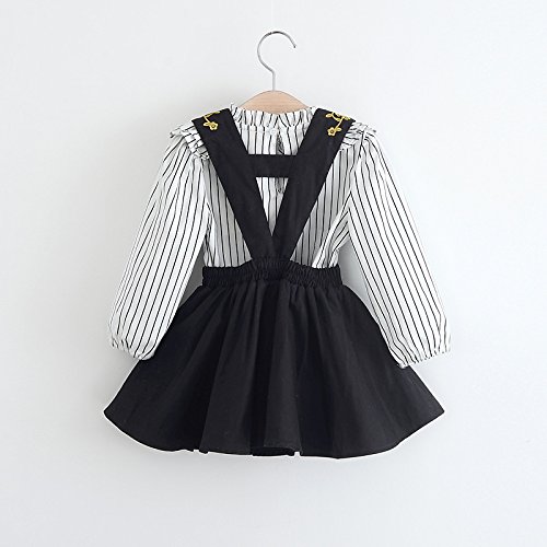 子供服 女の子 サロペット スカート 刺繍 ロンT セットアップ ワンピース ベビー服 子供 キッズ ストライプ柄 長袖 春秋 重ね着 入学 入園 (ブラック, 100cm)