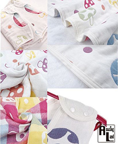 AmzingLand きのこ柄6重 ガーゼ スリーパー ベビー パジャマ 赤ちゃん ~ 子供 オーガニック コットン ガーゼ ハンカチ セット (L80cm)
