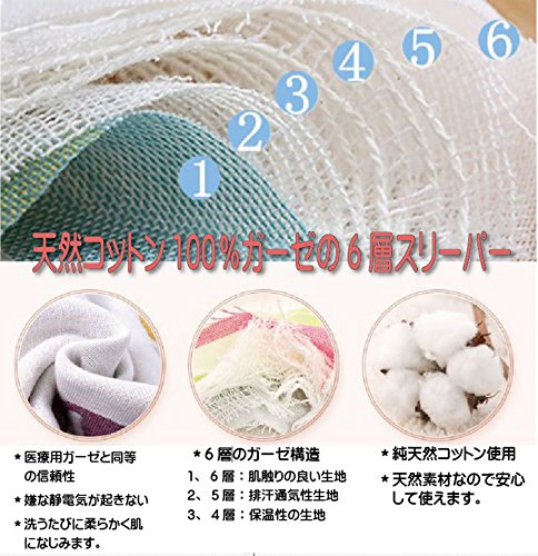 - 6重構造の天然コットン100%ガーゼスリーパーです。