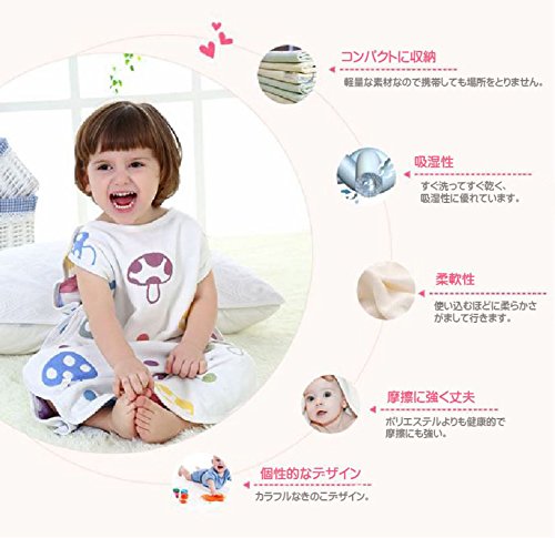 AmzingLand 6重 きのこ 柄 ガーゼ スリーパー ベビー パジャマ 赤ちゃん ~ 子供 オーガニック コットン ガーゼ ハンカチ セット