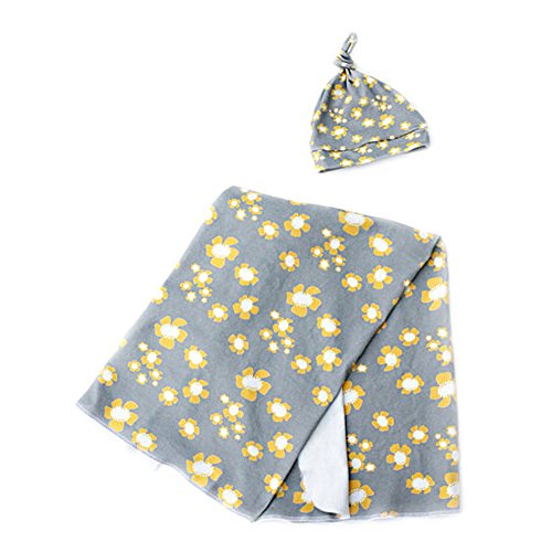 AmazingDeal ブランケット 帽子セット2点ベビー用 毛布 お昼寝 出産祝い 高品質 黄色花柄 キッズ用 グレー