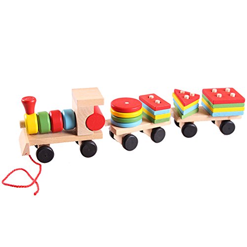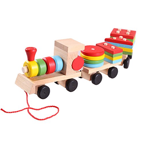 AmazingDeal 多機能のおもちゃ 列車 積み木セット パズル 子供 知育玩具 親子 キッズ 形合わせ 木製 カラフル 誕生日の贈り物