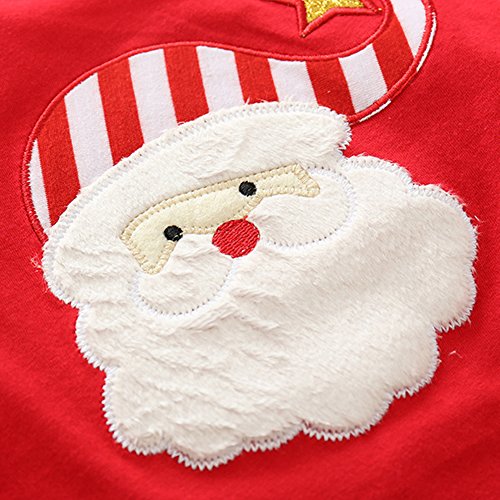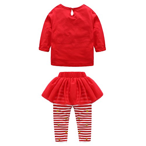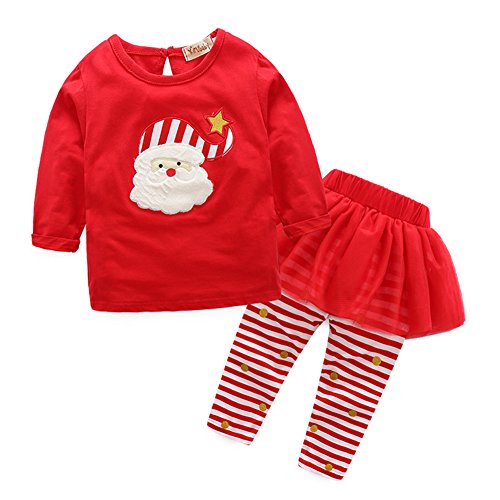 AmazingDeal 子供服 女の子 クリスマス サンタ ストライプ ボンボンスカート 長袖 春秋冬 上下セット 綿製品 衣装 可愛い (80)
