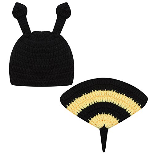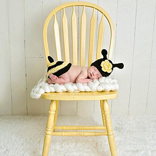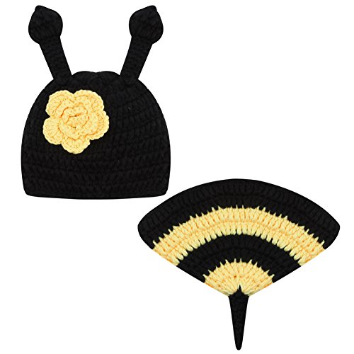 AmazingDeal ベビー 撮影服 記念写真 赤ちゃん ミツバチ 年賀状 可愛い 寝相アート ニット帽子セット 新生児 出産祝い (3-4ヵ月)