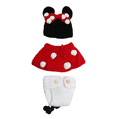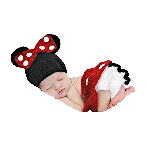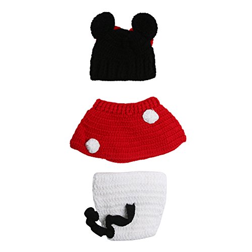 AmazingDeal ベビー 撮影服 マウス 記念写真 ネズミ 赤ちゃん 年賀状 可愛い 寝相アート ニット帽子セット 新生児 出産祝い (レッド) (M)