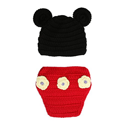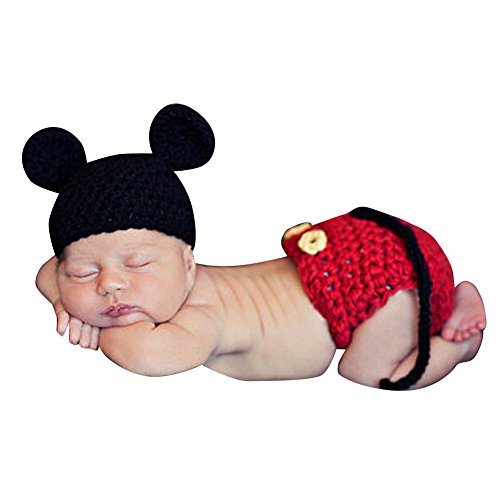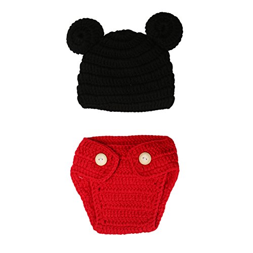 AmazingDeal ベビー 撮影服 マウス 記念写真 ネズミ 赤ちゃん 年賀状 可愛い 寝相アート ニット帽子セット 新生児 出産祝い (レッド) (0-2ヵ月)