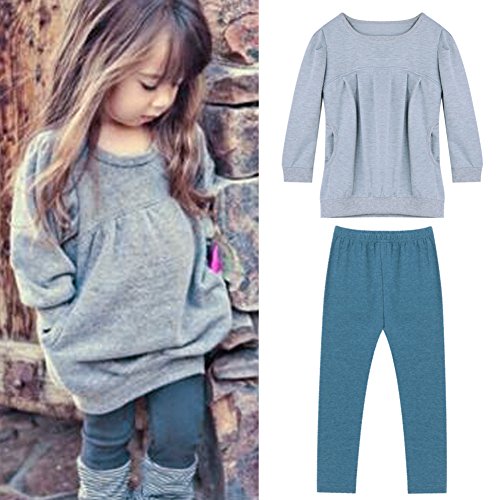 AmazingDeal 子供服 女の子 長袖 春秋 冬服 上装下装2点綿製品 無地トップス ロングパンツ 衣装 (90)