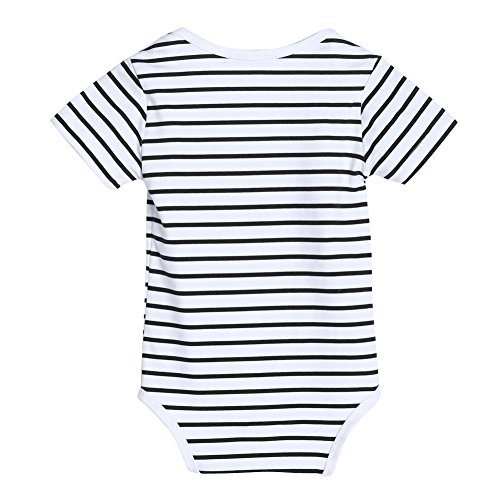 AmazingDeal ロンパース 子供服 ベビー爬行服 長袖 出産祝い 春秋 綿製品 連体衣装 可愛い 黒白二色ストライプ 0~18ヵ月適応 (90(9~12ヵ月))
