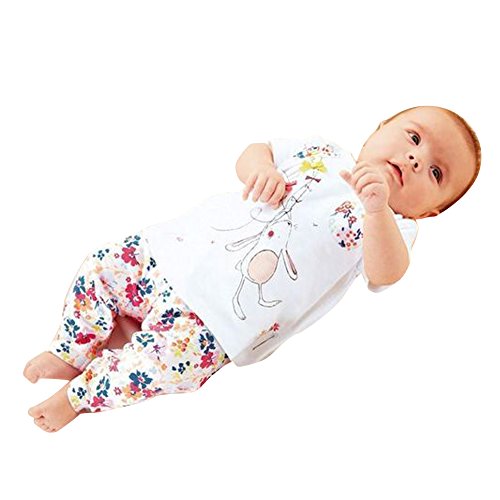 AmazingDeal 子供服 女の子 短袖 春秋冬 ルームウェア ストライプ 帽子付け 上下セット3点 綿製品 衣装 シンプルで可愛い (70(3-6ヵ月))