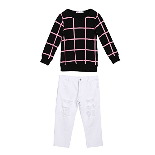 AmazingDeal 子供服 女の子 長袖 春秋 冬服 上装下装2点綿製品 ジーンズパンツ 衣装 (100)