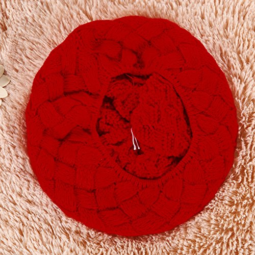 AmazingDeal ベビーベレー帽 記念写真 赤ちゃん 可愛い ニット帽子 防寒 新生児 出産祝い (レッド)