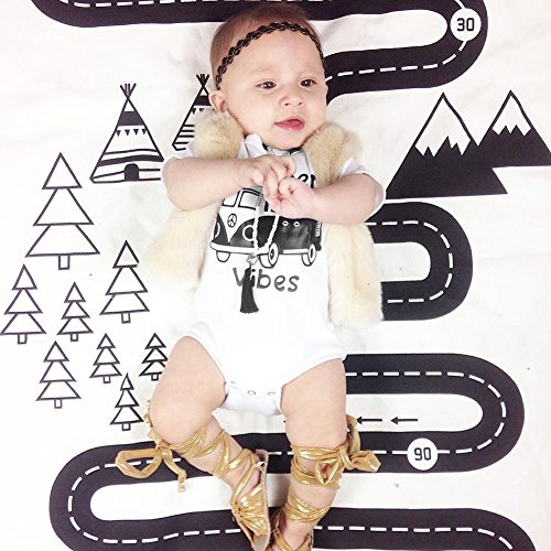 AmazingDeal 子供服 ベビー爬行服 春秋 ロンパース 綿製品 バス柄 連体衣装 出産祝い 可愛い 白 0~18ヵ月適応 (70「0~3ヵ月」)