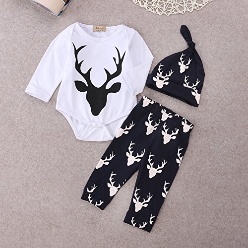 AmazingDeal 子供服 女の子 男の子 子供服 男女兼用 ベビー服 ルームウェア 長袖 春秋 冬服 長袖 春秋冬 上装下装帽子3点綿製品 衣装 可愛い (100)
