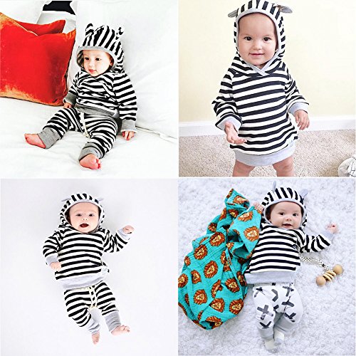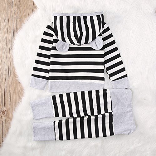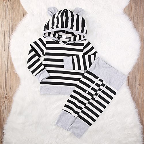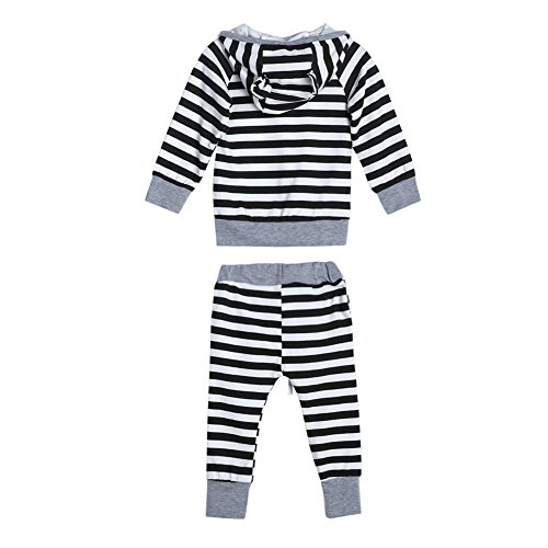 AmazingDeal 子供服 男の子 女の子 長袖 春秋 冬服 上装下装2点綿製品 ストライプトップス ロングパンツ 衣装 (90(9~12ヵ月))