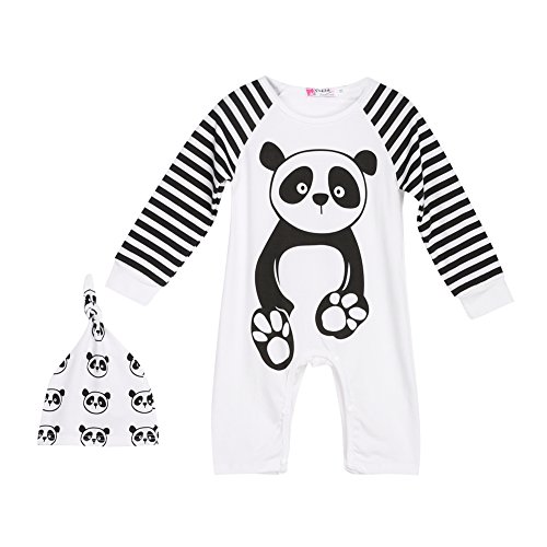AmazingDeal 子供服 ロンパース ベビー爬行服 帽子付き パンダ柄 男女兼用 ジャンプスーツ ルームウェア カバーオール 長袖 春秋 綿製品 連体衣装 可愛い (80「3~6ヵ月」)
