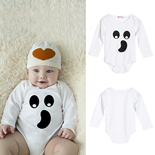 AmazingDeal 子供服 ベビー爬行服 春秋 ロンパース 綿製品 連体衣装 可愛い 白 0~18ヵ月適応 (90「6~12ヵ月」)