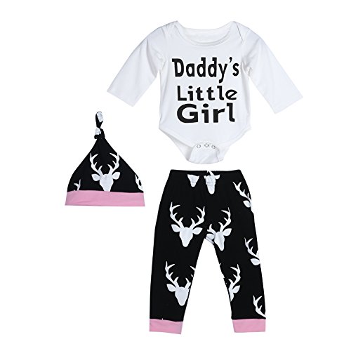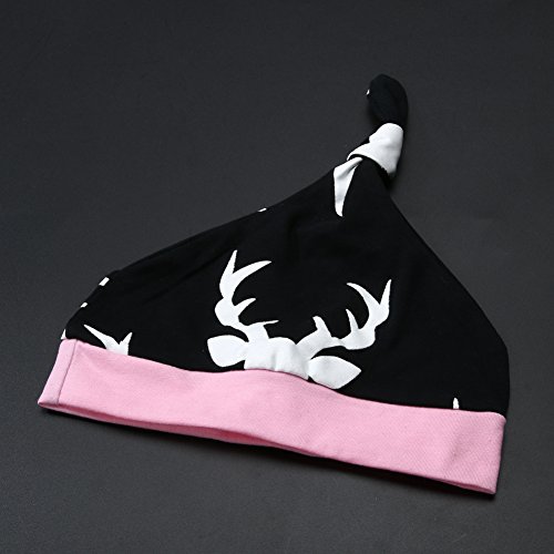 AmazingDeal 子供服 ロンパース ベビー爬行服 ロングパンツ 帽子付き 3点 鹿柄 男女兼用 ジャンプスーツ ルームウェア カバーオール 長袖 春秋 綿製品 連体衣装 可愛い (100(12~18ヵ月))