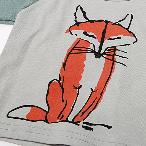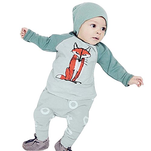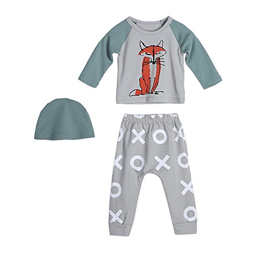 AmazingDeal 子供服 女の子 長袖 春秋冬 ルームウェア 狐柄 帽子付け 上下セット3点 綿製品 衣装 シンプルで可愛い (70(3-6ヵ月))