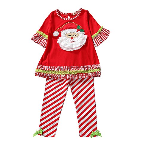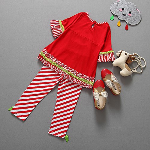 AmazingDeal 子供服 女の子 クリスマス サンタ ストライプ 長袖 春秋冬 上下セット 綿製品 衣装 可愛い (70)