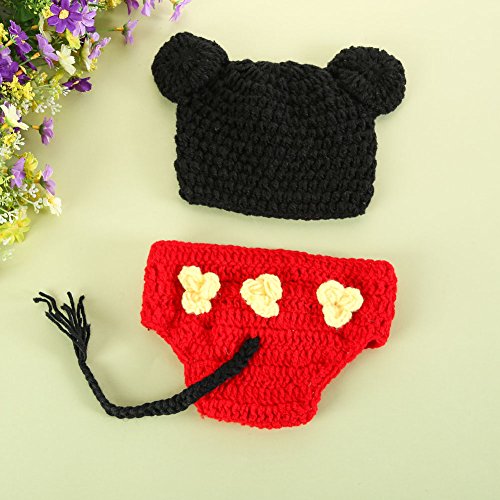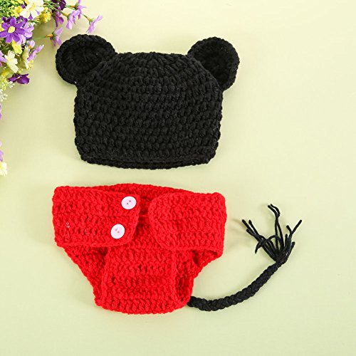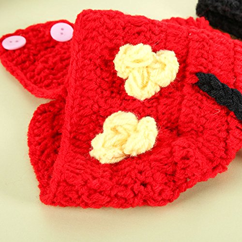 AmazingDeal ベビー 撮影服 マウス 記念写真 ネズミ 赤ちゃん 年賀状 可愛い 寝相アート ニット帽子セット 新生児 出産祝い (レッド)