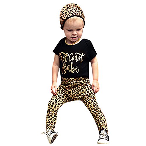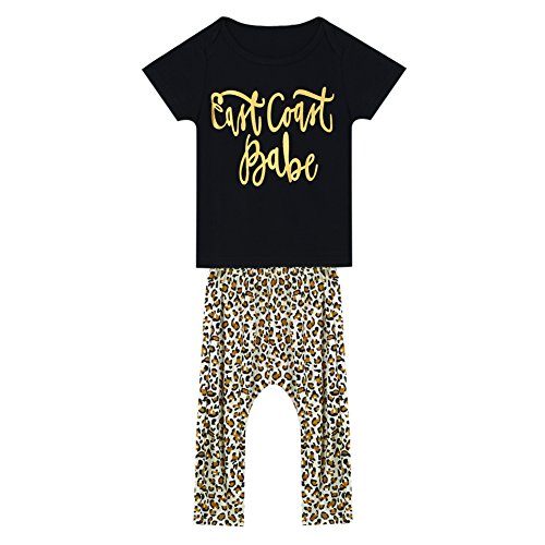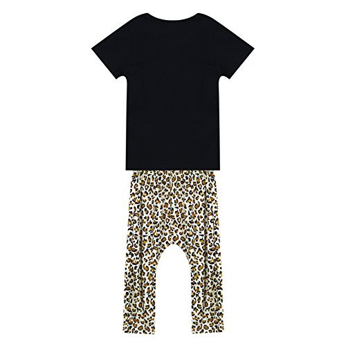 AmazingDeal 子供服 男の子 女の子 短袖 快適 春秋 夏装 スポーツ風 上装下装2点綿製品 トップス Tシャツ+ヒョウ柄ロングパンツ 衣装 (100(12~24ヵ月))