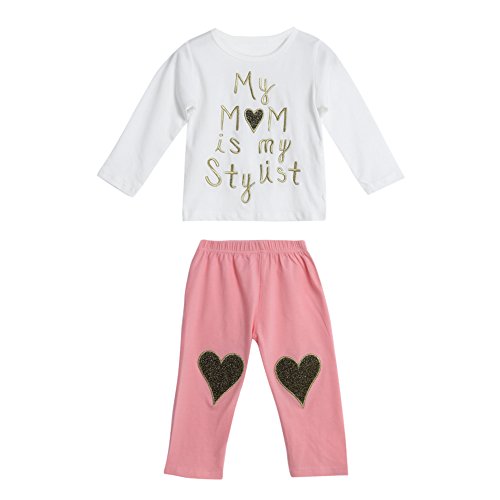 AmazingDeal 子供服 女の子 無地 ハート 長袖 春秋冬 ルームウェア 刺繍英文字 上下セット 綿製品 衣装 シンプルで可愛い (120(4-5歳))