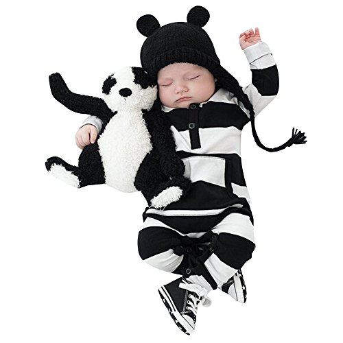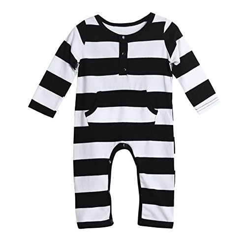 AmazingDeal 子供服 ロンパース ベビー爬行服 ストライプ 女の子 ジャンプスーツ ルームウェア カバーオール 長袖 春秋 綿製品 連体衣装 可愛い (80(6~12ヵ月))