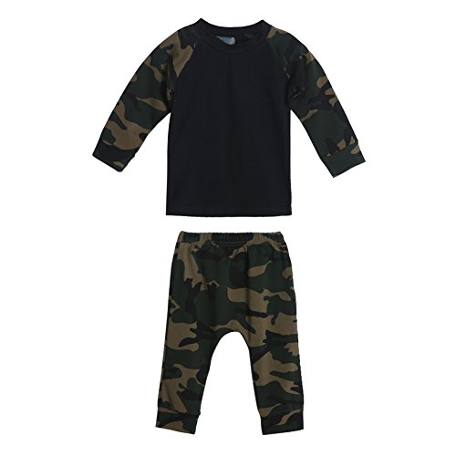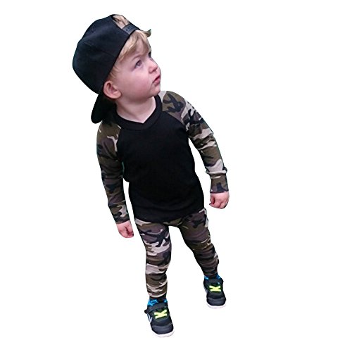 AmazingDeal 子供服 男女兼用 ベビー服 ルームウェア 長袖 春秋 冬服 迷彩柄 男女兼用 上装下装2点綿製品 トップス ロングパンツ 衣装 カッコイイ (100(18~24ヵ月))