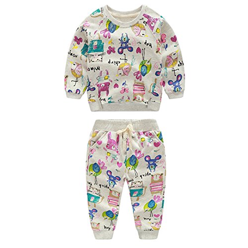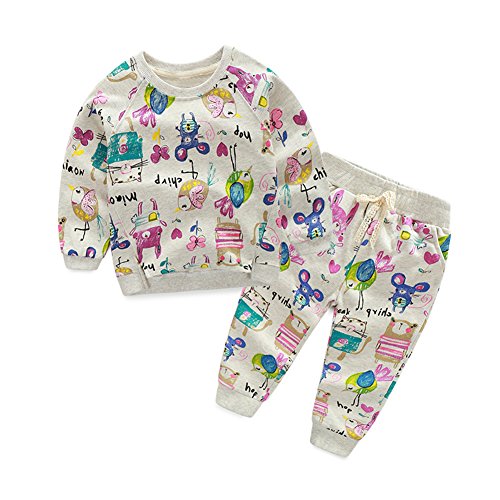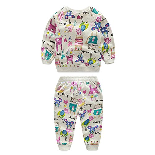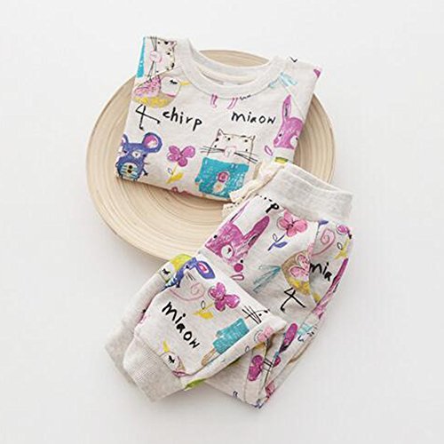 AmazingDeal 子供服 男の子 女の子 長袖 春秋 冬服 上装下装2点綿製品 出産祝い 動物柄トップス ロングパンツ 衣装 (90(2~3才))
