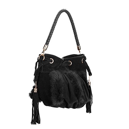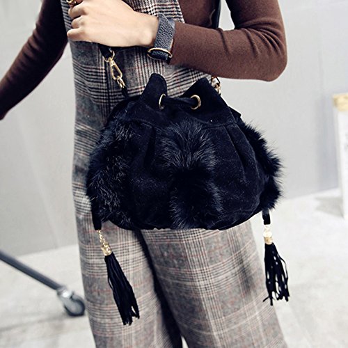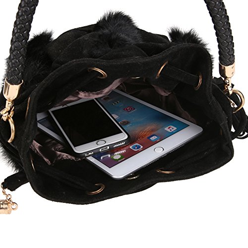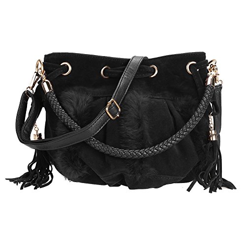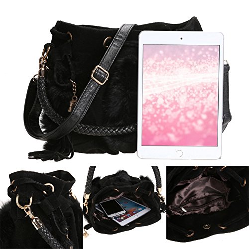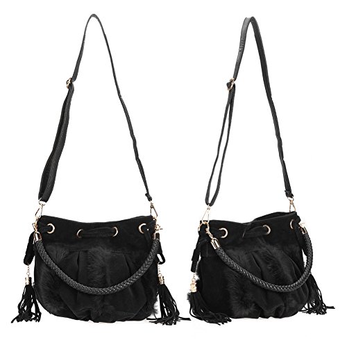 AmazingDeal レディース 人工コニー・ウール 斜めがけ トートバッグ 着回し高品質 編み ファション (黒)