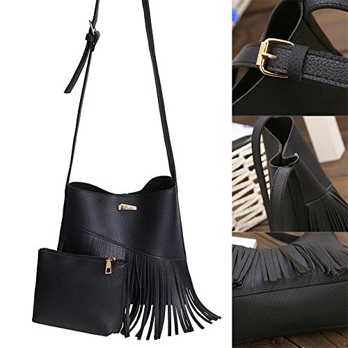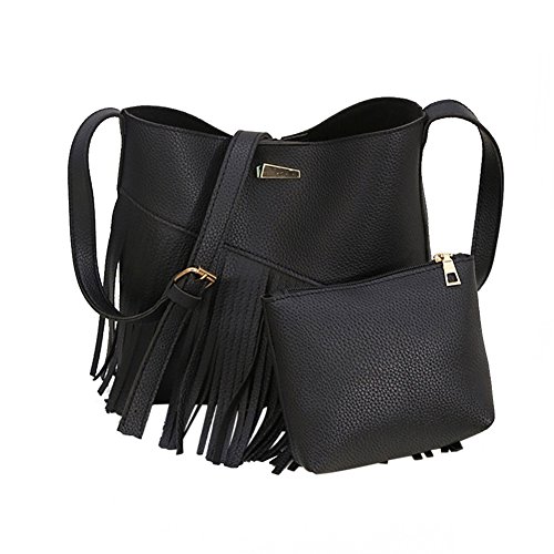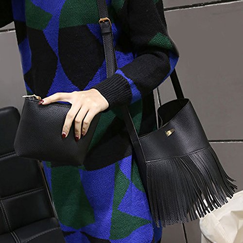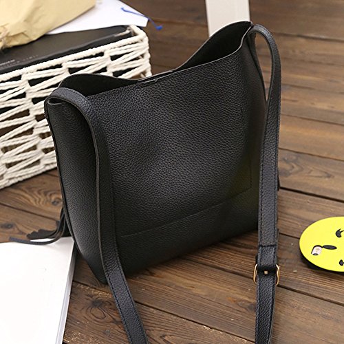 AmazingDeal レディース PUレザーバケツパック 財布 ハンドバッグ トートバッグ セット 着回し 調整できる ファション (ブラック)