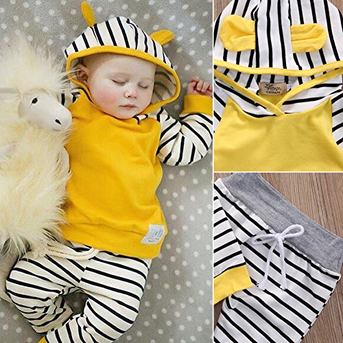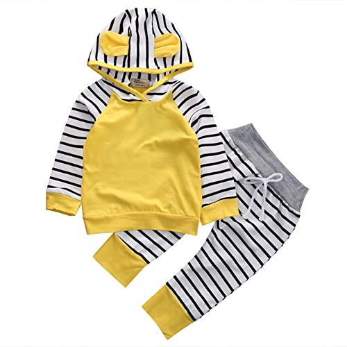 AmazingDeal 子供服 男の子 女の子 ストライプ 長袖 パーカー 春秋冬 上下セット 綿製品 衣装 (70)