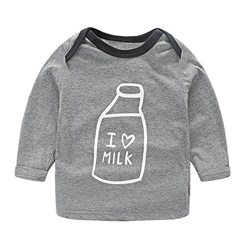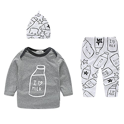 AmazingDeal 子供服 ベビー服 男の子 女の子 ルームウェア 長袖 Tシャツ+ロングパンツ+帽子 3点 春秋冬 上下セット 出産祝い 綿製品 衣装 グレー (100(12~18ヵ月))