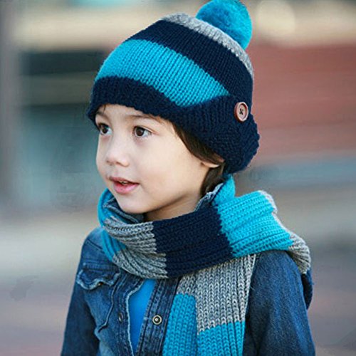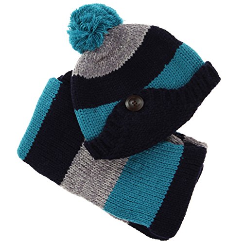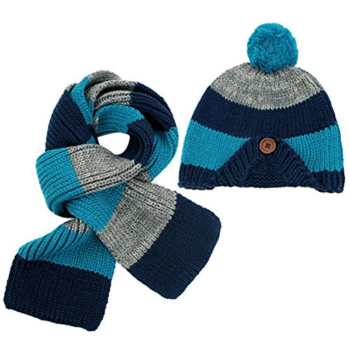 AmazingDeal 子供用 ニット帽 マフラー ベビー 赤ちゃん 男女兼用 兼用2点セット 耳あて かわいい 防寒 あったか 春秋冬 (ダックブルー)