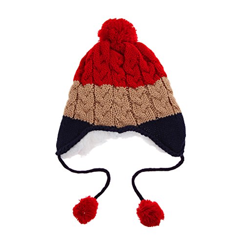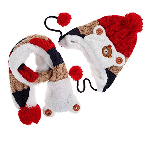 AmazingDeal 子供用 ニット帽 マフラー 2点セット ベビー 赤ちゃん 男の子 女の子 兼用 耳あて かわいい 防寒 あったか 春秋冬 選べる4色 (レッド)