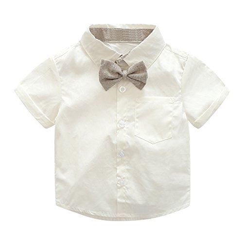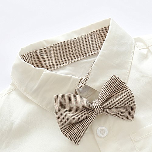 AmazingDeal 子供 夏春 短袖シャツ つりズボン 男の子 蝶ネクタイ 春秋 サスペンダーパンツ セット ジェントルマン 結婚式 披露宴 入園式 (70(3-6ヵ月))
