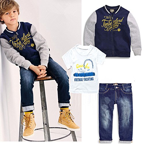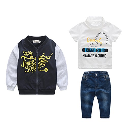 AmazingDeal 子供 長袖 冬服 ジャケット+Tシャツ+ジーンズパンツ3点セット 男の子 春秋 スポーツ レジャー ファション (100)