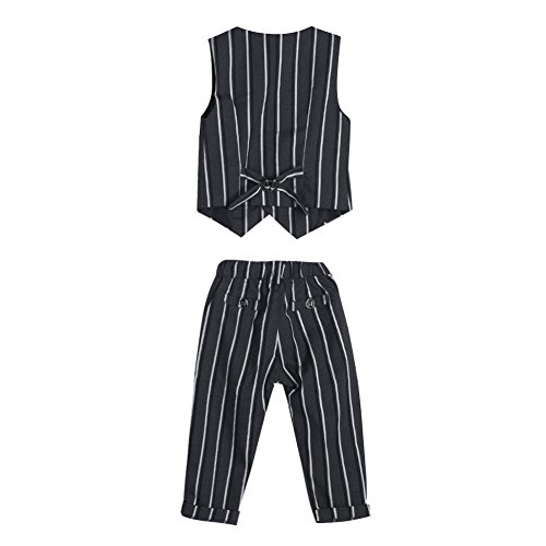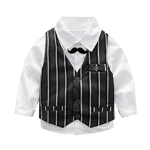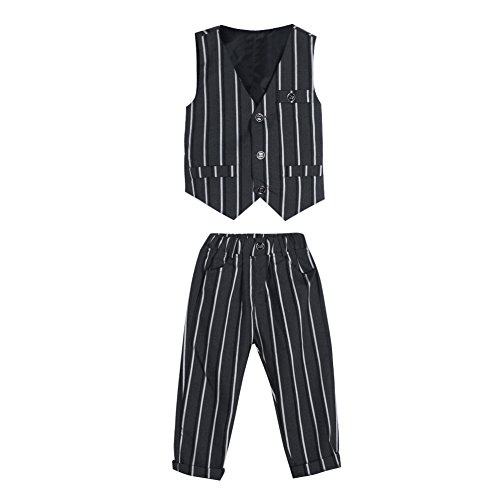 AmazingDeal 子供 長袖 フォーマル チョッキ+シャツ+パンツ ストライプ 冬服 男の子 結婚式 発表会 入学式 卒業式 春秋 ジェントルマン レジャー 可愛い (110(4-5歳))