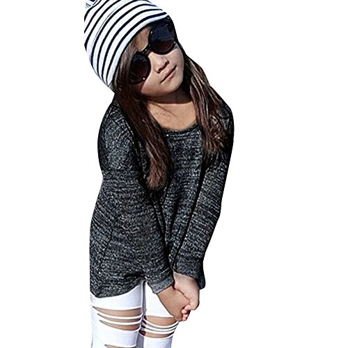 AmazingDeal 子供服 女の子 長袖 グレーTシャツ+白い破れジーンズセット レジャー 春秋 クール ファション (110(4~5才))