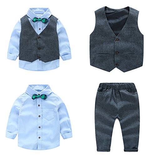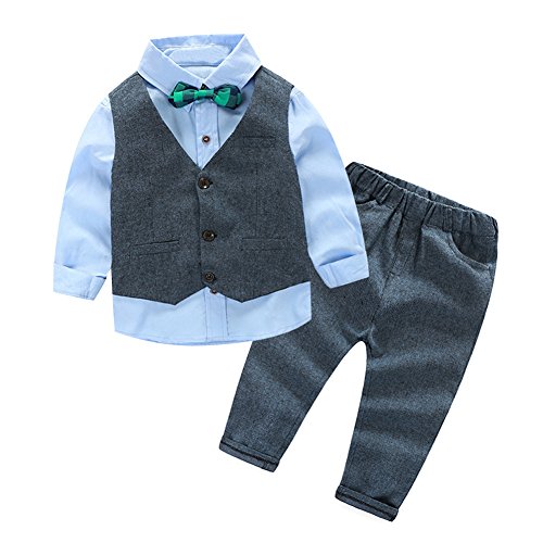 AmazingDeal 男の子 子供 長袖 フォーマル チョッキ+シャツ+パンツ 無地 冬服 男の子 結婚式 発表会 入学式 卒業式 春秋 ジェントルマン レジャー 可愛い (100(2-3歳))