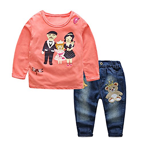 AmazingDeal 子供服 女の子 長袖Tシャツ+ジーンズセット レジャー 春秋 クール ファション (150「7~8才」)