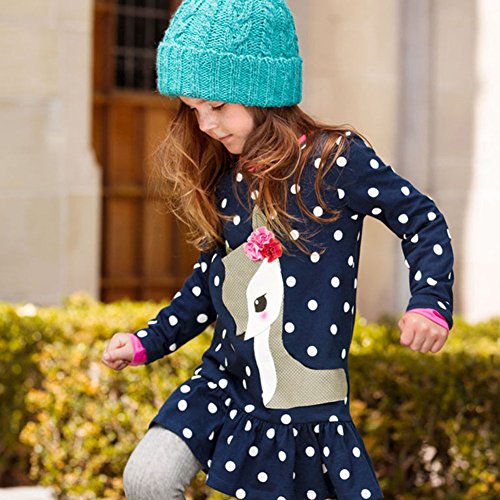 ベビーTシャツドレス幼児用女の子子供用長袖秋服パーティー鹿トップス服装 ブルー