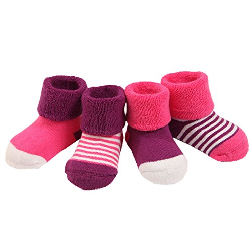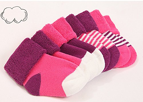 Amberetech ベビー 幼児用 純綿靴下 赤ちゃんソックス 保温 秋冬 ベビー キッズ 赤ちゃん 新生児 お祝い 出産 祝い ムール用 柔らかい 滑り止め付き快適 可愛い 保温性に優れ 細工な体裁 (パープルとピンク)