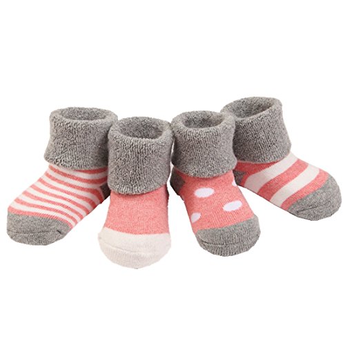 Amberetech ベビー 幼児用 純綿靴下 赤ちゃんソックス 保温 秋冬 ベビー キッズ 赤ちゃん 新生児 お祝い 出産 祝い ムール用 柔らかい 滑り止め付き快適 可愛い 保温性に優れ 細工な体裁 (S, ピンクとグレー)