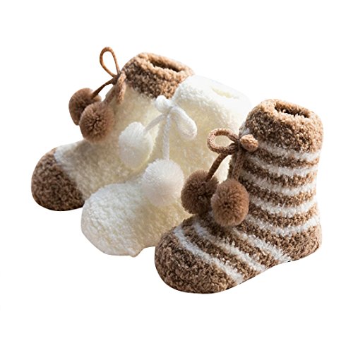 Amberetech ベビー 幼児用 純綿靴下 赤ちゃんソックス 保温 春秋 ベビー キッズ 赤ちゃん 新生児 お祝い 出産 ムール用 柔らかい 滑り止め付き快適 可愛いサンゴ絨靴下 保温性に優れ ベビーソックス3足セット 細工な体裁 (M, コーヒー色)