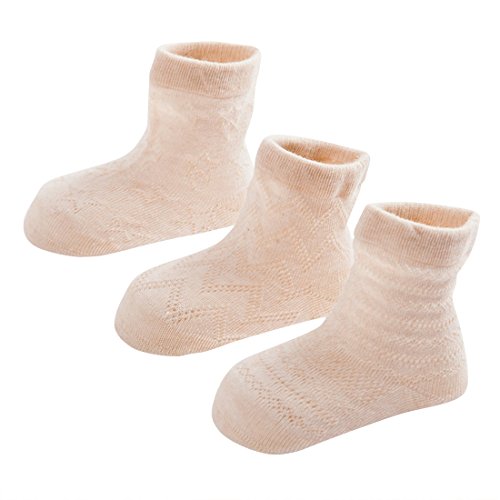 Amberetech ベビー 幼児用 純綿靴下 赤ちゃんソックス 保温 春秋冬 ベビー キッズ 赤ちゃん 新生児 お祝い 出産 ムール用 柔らかい 滑り止め付き快適 可愛い靴下 保温性に優れ ベビーソックス3足セット 細工な体裁 (S, 2)