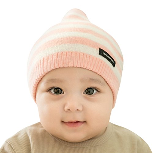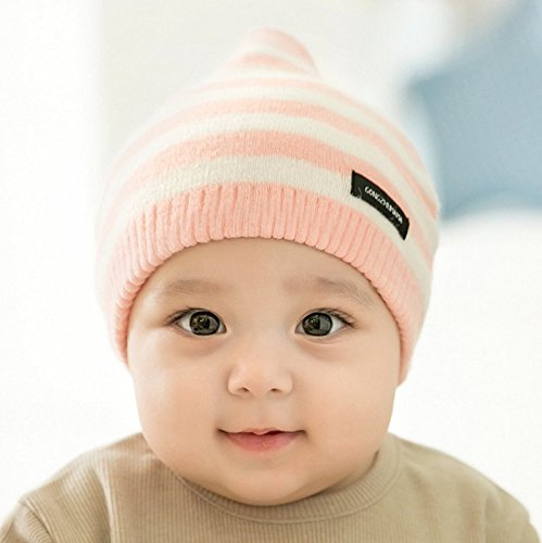 Amberetech ベビー帽子 赤ちゃん帽子 子供 防風・防寒・保温 耳保護 春秋冬新型 可愛く柔らかいニット帽子 ストライプ模様 柔らかい手の感触 暖かくかわいい帽子 春 秋 冬 女の子 男の子 (ピンク)