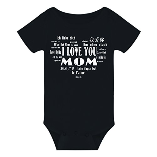 Amberetech ベビーロンパース 半袖 男女兼用 夏 黒 白 0~6ヶ月設定 ベビーボディスーツ 女の子 男の子 (S, 黒mom)