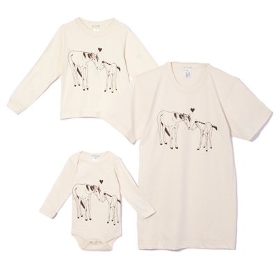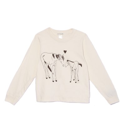 - 仲良しなお馬さんとポニーのシックな長袖シャツ☆【サイズ】4T 【カラー】organic cream(オフホワイト) 【素材】オーガニックコットン100%